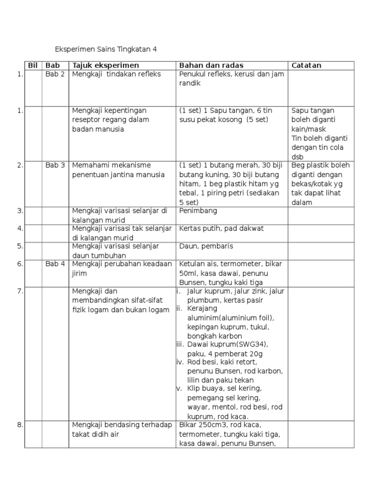 Bab 5 Sains Tingkatan 4 - Bab 1 mikroorganisma bab 2 nutrisi dan teknologi makanan bab 3 kelestarian alam bab 4 kadar tindak balas bab 5 sebatian karbon bab 6 elektrokimia bab 7 cahaya dan optik bab 8 daya dan tekanan bab 9 teknologi angkasa lepas.