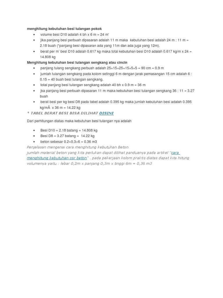 Cara Menghitung Kebutuhan Besi Kolom Rumah Begel Dan Tulangan Pokok Ahadi from www.ahadi.id Jika anda akan membangun suatu bagian struktur bangunan, pertama anda harus sudah menentukan diameter dan panjang besi beton. Oleh karena itu berikut cara praktis menghitung perkiraan kebutuhan bata untuk dinding rumah. Sebagai contoh, jika satu kali. Gambar 2 untuk lebih jelasnya, silahkan perhatikan gambar 2 dibawah ini. Cara menghitung kebutuhan besi polos/ulir. Home » teknik sipil » gambaran menghitung kebutuhan besi kolom pada struktur bangunan. Berapa perbandingan kebutuhan semen, pasir, batu untuk mendapatkan campuran beton pondasi yang memiliki kualitas baik saat ingin mulai membangun sebuah rumah, tentu hal pertama yang dilakukan adalah pembuatan pondasi rumah tersebut. Ada satu rumus yang bisa dipakai dan diterapkan saat menghitung kebutuhan plat besi lantai.