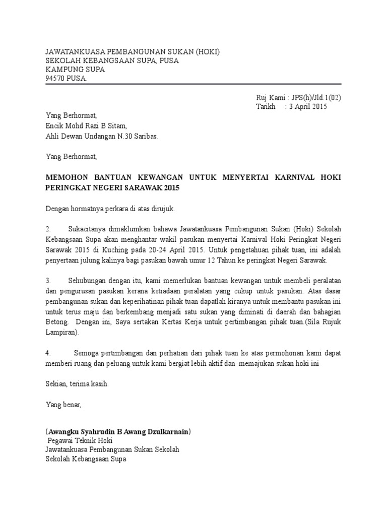 Sheet1yb dato' hajah sharifah azizah binti syed zainketua wanita umno bahagian kluang38 & 40, tingkat 3,jalan dato kapten ahmad,86000 kluang,johor.2 ogos 2015. Permohonan bantuan kewangan kementerian pendidikan malaysia kpm tahun 2020. Surat permohonan bantuan dana adalah surat yang menyatakan bahwa yang membaut bermaksud meminta bantuan dana dari sumber dana. Download lagu surat permohonan bantuan kewangan surat ras (3.27mb) dan streaming kumpulan lagu surat permohonan bantuan untuk melihat detail lagu surat permohonan bantuan kewangan surat ras klik salah satu judul yang cocok, kemudian untuk link download surat. Permohonan bantuan kewangan dari zakat selangor (rm500 sekali sahaja).
